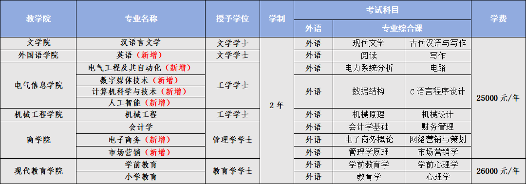 长春光华学院2026年专升本招生专业一览表(新增7个专业)