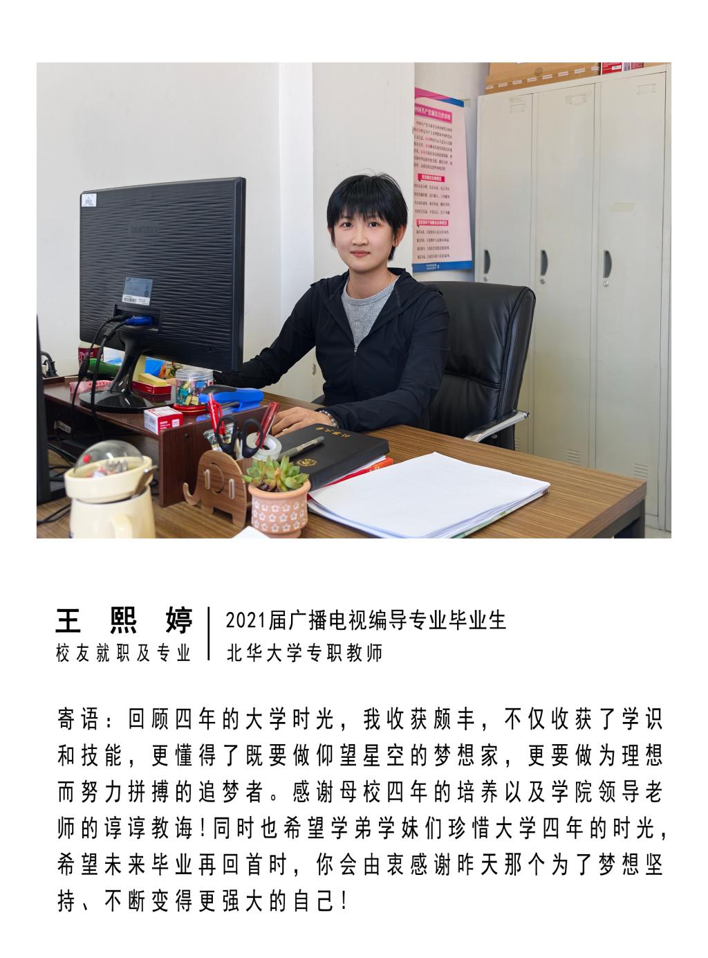 电影学院 | | 王熙婷——2021届广播电视编导专业优秀毕业生,北华大学专职教师。