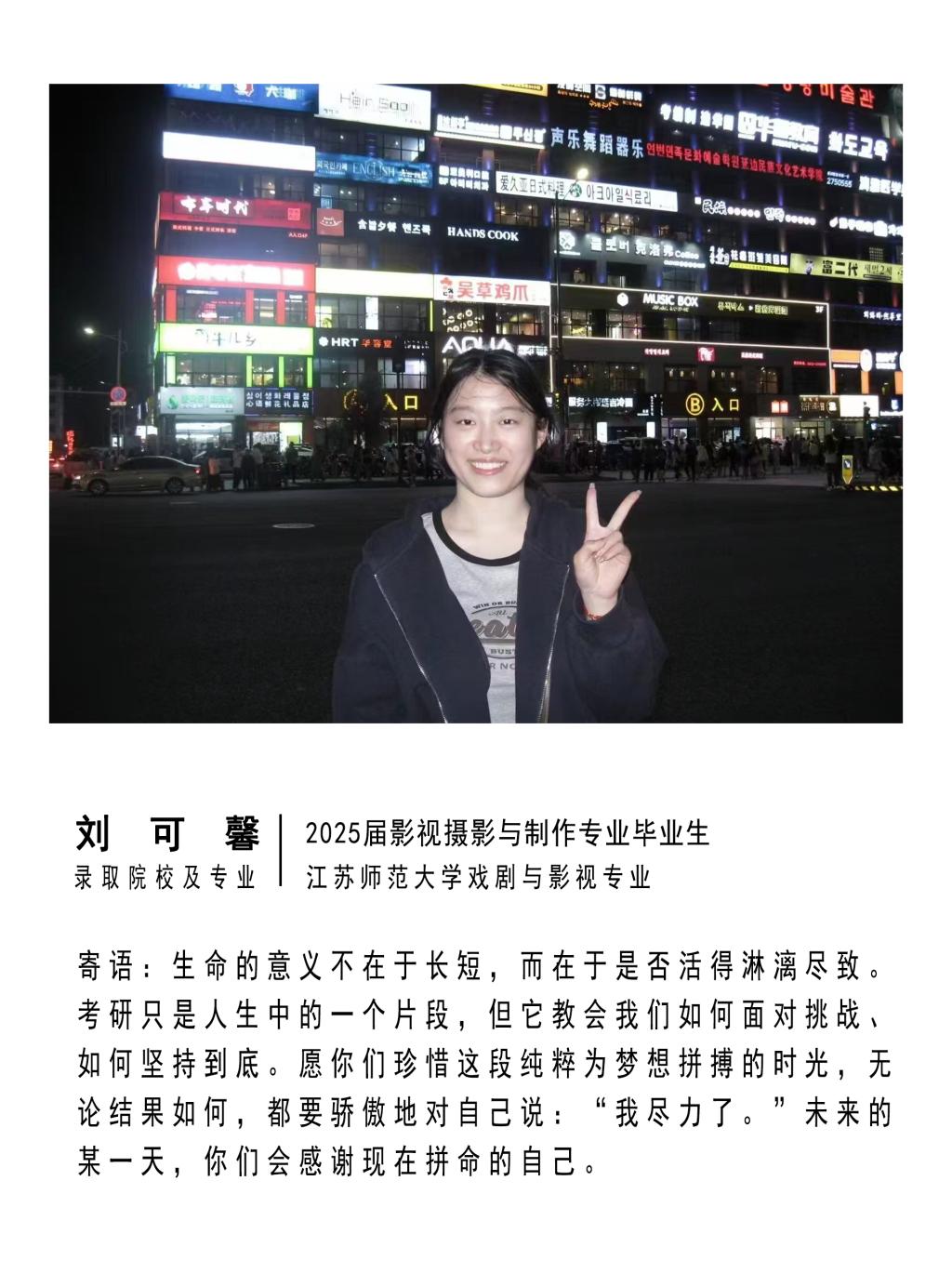 电影学院 || 刘可馨——2025届影视摄影与制作专业优秀毕业生,考取江苏师范大学硕士研究生。